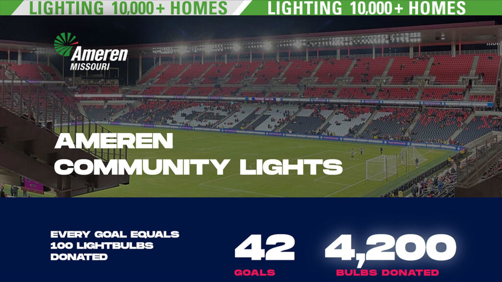 Ameren partnered with Thoughtprocess Interactive to create a digital centerpiece for its Community Lights initiative, an interactive landing page that tracks St. Louis City SC goals and converts them into real-world impact. For every goal scored, 100 LED bulbs are donated to local communities, and the site dynamically displays this growing total. The page also serves as a resource hub for announcements and energy-saving content throughout the season, blending storytelling, data visualization, and community engagement into one streamlined experience.
