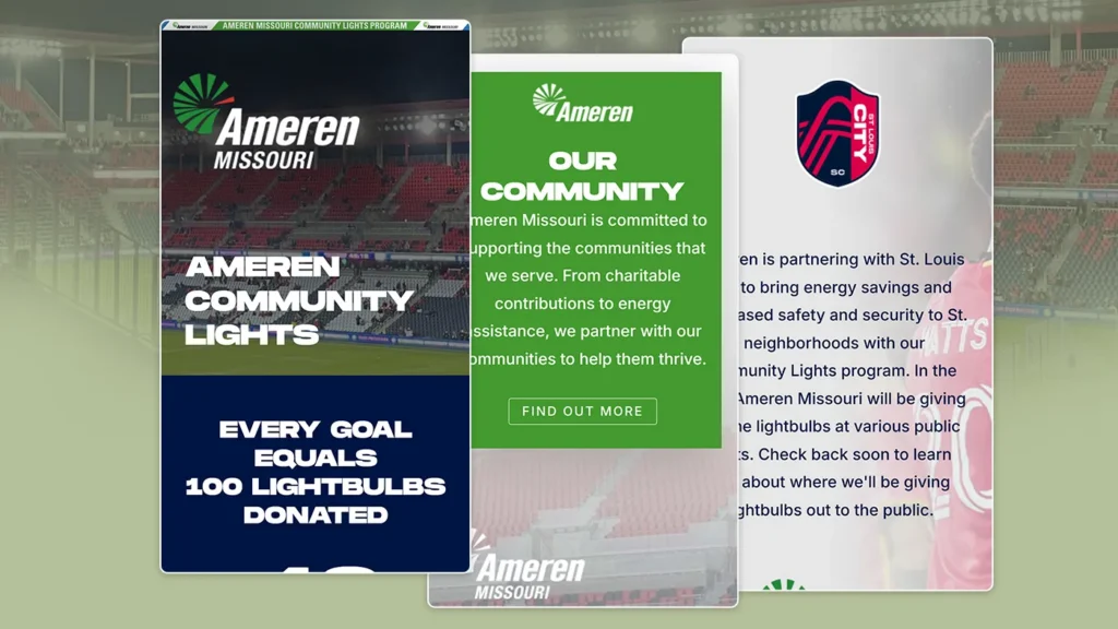 Ameren wanted to showcase its partnership with St. Louis City SC in a way that highlighted real community impact. For every goal scored, Ameren donates 100 LED bulbs to local neighborhoods—but the initiative needed a digital hub that could bring this to life in real time. We needed to: