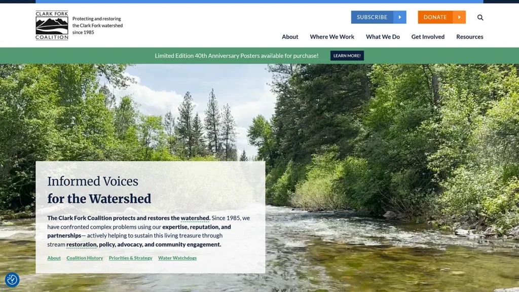 The result was a simplified, user-first structure that supports Clark Fork Coalition’s mission and makes the site easier to navigate—for everyone from scientists to schoolteachers. The site now guides people toward meaningful action, lets visitors can explore the river basin by region or concern, and makes major threats and projects easier to discover and understand.