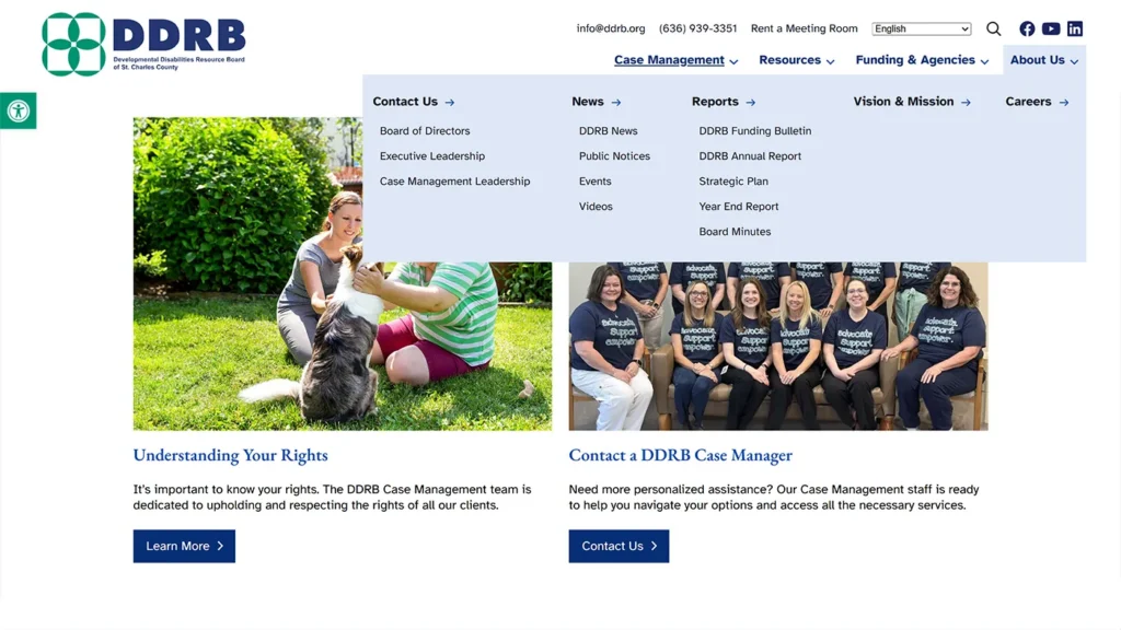 The Developmental Disabilities Resource Board (DDRB) of St. Charles County needed a modern, updated website that better reflected who they are and the diverse people they serve. Plus, they wanted easier content management and improved SEO.