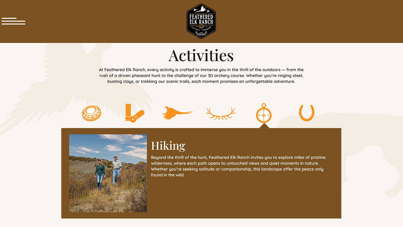 Feathered Elk Ranch now has a professional online presence that reflects its brand and mission—while staying flexible enough to grow with the business. Visitors can explore the ranch’s offerings, get a feel for the experience, and reach out for more information.
