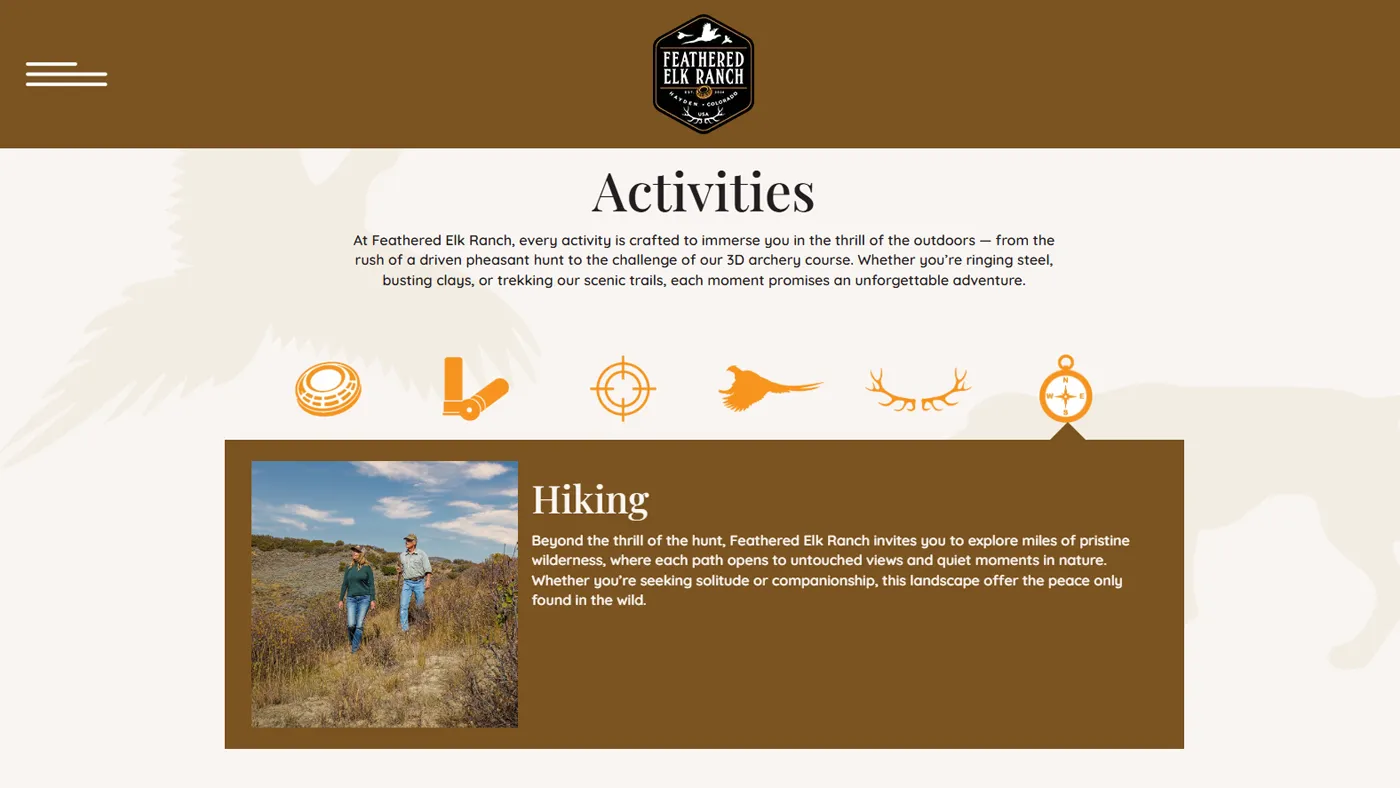 Feathered Elk Ranch now has a professional online presence that reflects its brand and mission—while staying flexible enough to grow with the business. Visitors can explore the ranch’s offerings, get a feel for the experience, and reach out for more information.