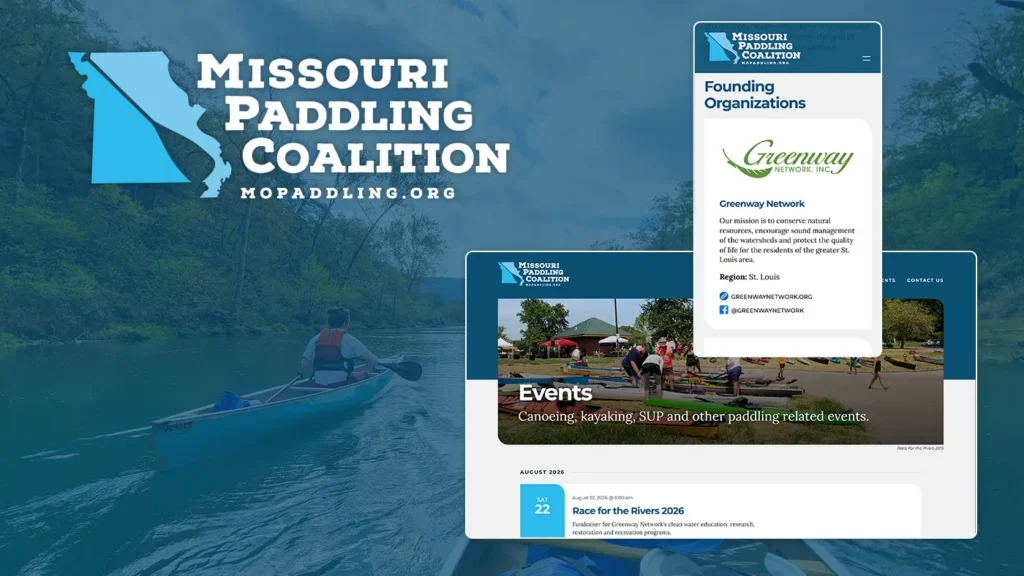We developed a complete visual identity for the Coalition, including a new logo and supporting collateral that capture the organization’s connection to Missouri’s waterways. Their new custom WordPress website was designed to serve as a central hub for the paddling community, featuring a directory of member organizations, an interactive event calendar, and flexible tools for sharing news and resources—all built to grow alongside the Coalition’s expanding network.