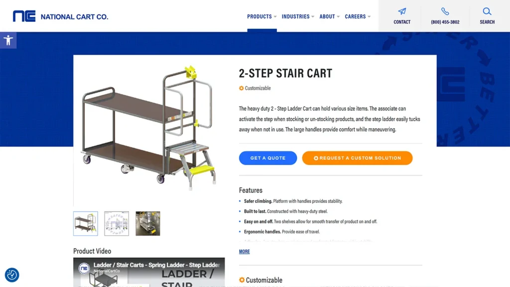 National Cart is a U.S.-based leader in the design and manufacturing of carts, racks, and custom equipment for grocery, warehouse, and foodservice industries. Known for innovation, durability, and precision, their products are trusted by major retailers and distribution centers nationwide. As their online catalog expanded, National Cart sought to modernize their website’s usability and strengthen its search visibility to support continued growth.