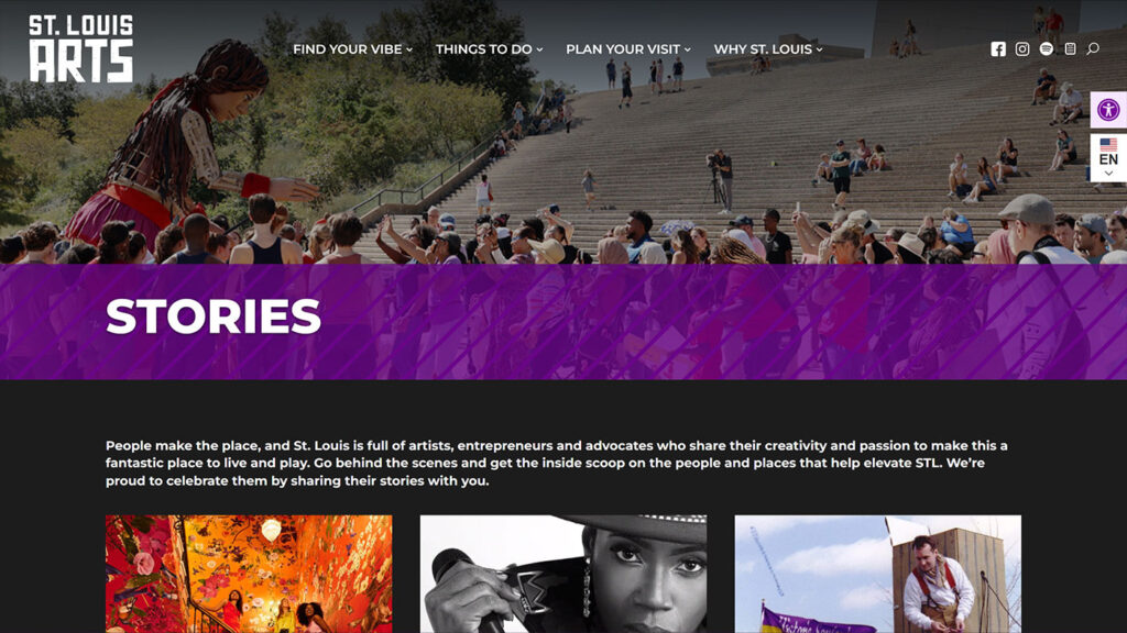 The Regional Arts Commission of St. Louis launched St. Louis Arts as part of a broader effort to promote tourism through the city’s cultural landscape. The goal was to create a digital hub that captured the spirit of St. Louis’ arts community while providing practical resources for visitors. With tight timelines and a focused budget, RAC partnered with TPI to bring the concept to life quickly and effectively.