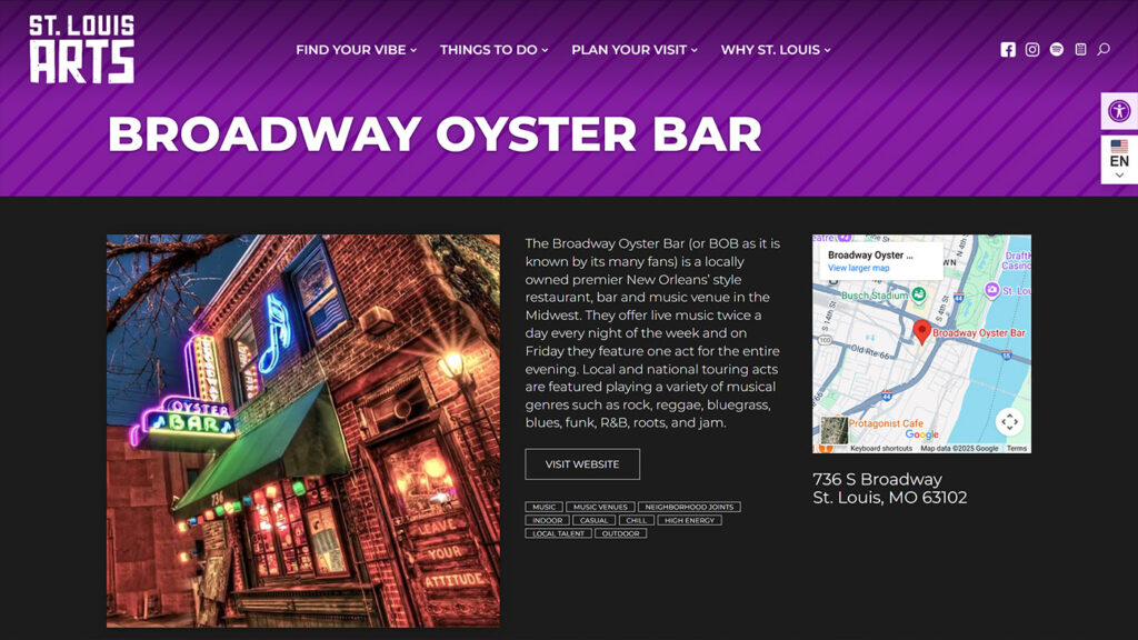 St. Louis Arts launched on time and within budget, successfully anchoring RAC’s regional tourism campaign. The site became a vibrant, easy-to-navigate resource for visitors seeking art, music, and cultural experiences. Its mobile-first design and clear navigation enhanced user engagement while expanding awareness of St. Louis’ creative community